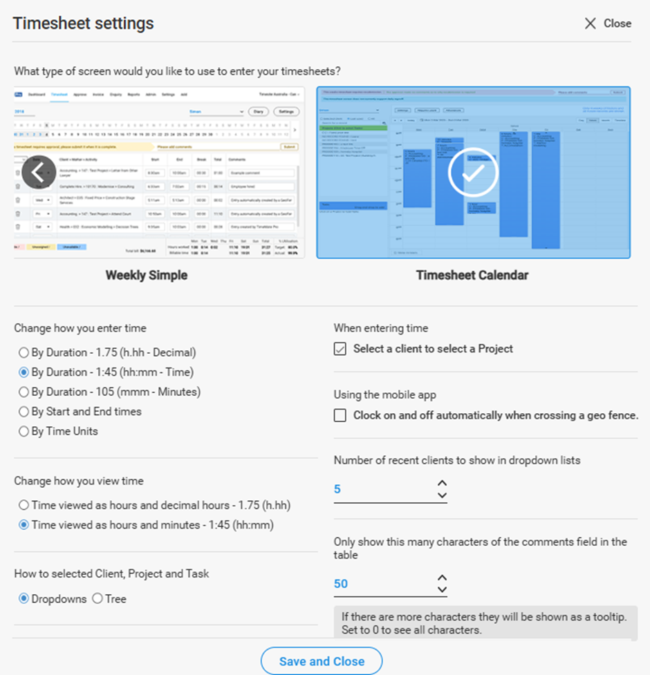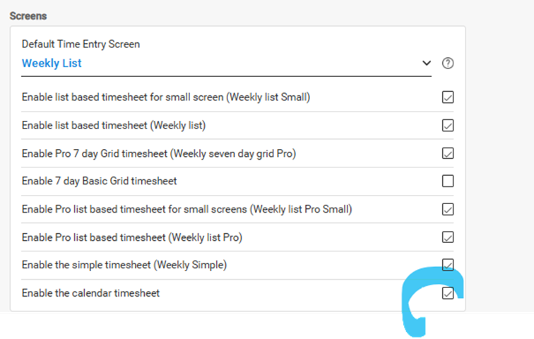 Then go to the timesheet tab and press the settings button and scroll across to the calendar view (Pic 2 & 3).